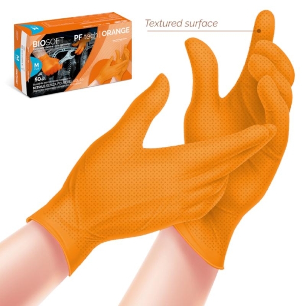 -Τα γάντια BIOSOFT TECH ORANGE είναι κατασκευασμένα σε ένα ενιαίο σώμα, επομένως έχουν εξαιρετική συνοχή, ελαστικότητα και απαλότητα , εγγυώνται τέλεια πρόσφυση και εξαιρετική ευαισθησία στον χειριστή.
