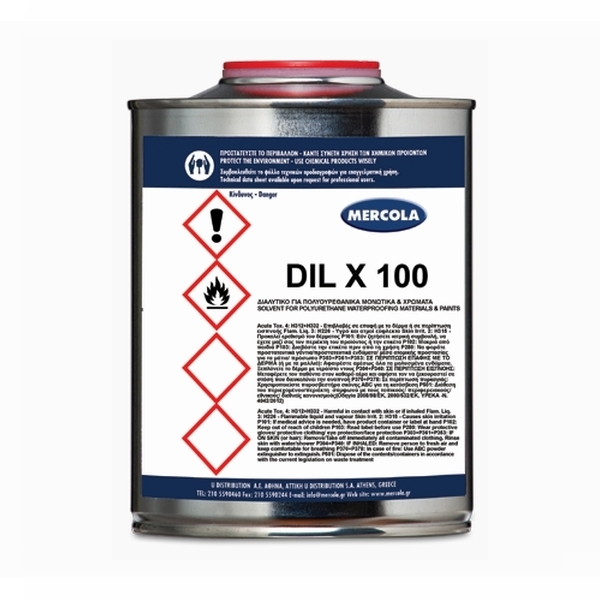 Το DIL X 100 είναι διαλυτικό, που χρησιµοποιείται για την αραίωση πολυουρεθανικών βαφών
