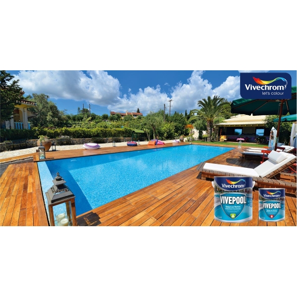 Το VIVEPOOL, εποξειδικό χρώμα διαλύτου δύο συστατικών, προσφέρει μοναδικά πλεονεκτήματα για την άψογη προστασία και την εκθαμβωτική εμφάνιση της πισίνας σας: