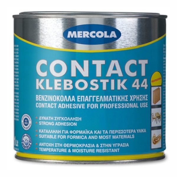 Η CONTACT KLEBOSTIK 44 είναι πολύ ισχυρή βενζινόκολλα επαγγελματικής χρήσης με βάση το συνθετικό καουτσούκ, συνθετικές ρητίνες και διαλύτες. Έχει εξαιρετική αντοχή στη θερμοκρασία, στην υγρασία, στα έλαια και στα οξέα.