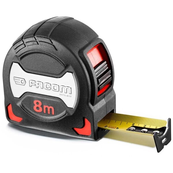 Μετροταινία υψηλής ποιότητας με ανοξείδωτο κλιπ ζώνης, ανθεκτικό περίβλημα Bi-Mat και λάμα με επικάλυψη PTFE για μεγαλύτερη διάρκεια ζωής και ομαλή απόσυρση. Κατάλληλη για επαγγελματίες που απαιτούν ακρίβεια και στιβαρότητα.