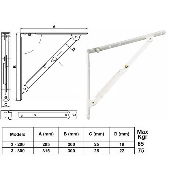 Γωνιά Ραφιού Σπαστή 205x200mm Λευκή Amig Mod.3