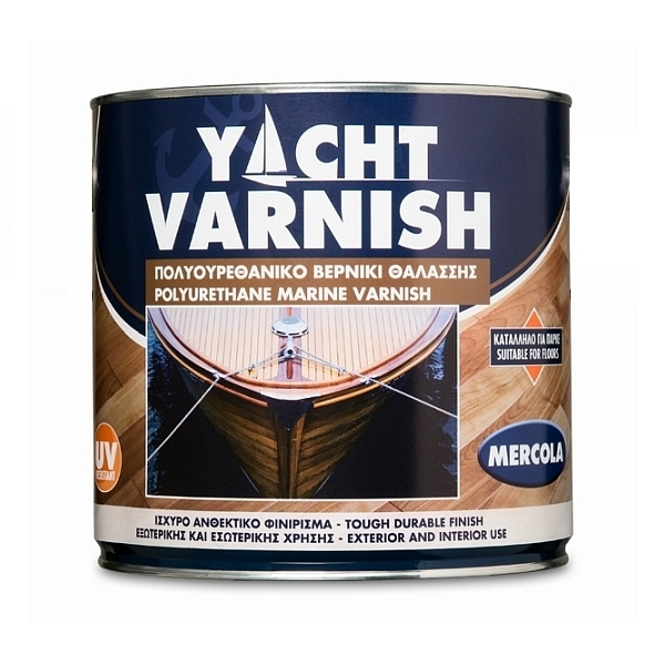 Το YACHT VARNISH είναι βερνίκι αλκυδικής πολυουρεθάνης 1 συστατικού ναυτιλιακών προδιαγραφών που παρέχει μακροχρόνια προστασία σε ξύλινες επιφάνειες εξωτερικών και εσωτερικών εφαρμογών. Περιέχει φίλτρα UV για αποτελεσματική προστασία από την ηλιακή ακτινοβολία. Η ειδική πολυουρεθανική του σύνθεση προσφέρει ανθεκτικό φινίρισμα που εξασφαλίζει αντοχή στα χτυπήματα, ξεφλουδίσματα και στις συστολές και διαστολές του ξύλου. Ο εξαιρετικός συνδυασμός σκληρότητας και ελαστικότητας το καθιστούν ιδανικό και για βερνίκι πατώματος.