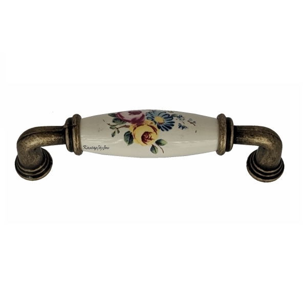 Αρχική Πόμολα Επίπλων Λαβές Επίπλων Πορσελάνης Λαβή Επίπλου Πορσελάνη Ιβουάρ Λουλούδια Βάση Αντικέ 96mm TMC 2020-96-330