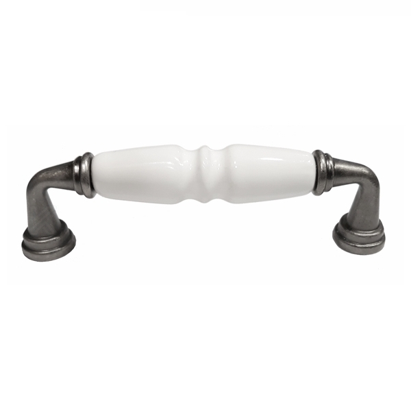 Λαβή Επίπλου Πορσελάνη Λευκή Βάση Κασσίτερος 96mm AS-ZA8270