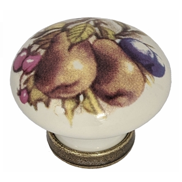 Πόμολα Επίπλων Πορσελάνης Ιβουάρ Φρούτα Βάση Χρυσό Αντικέ 30mm MG29615