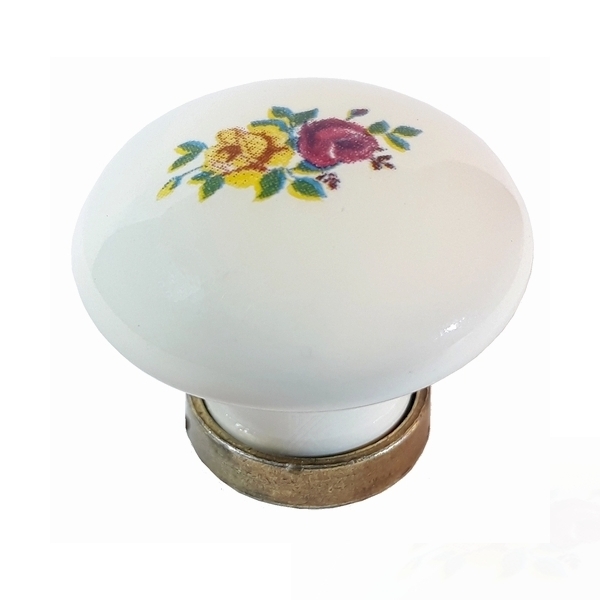 Πόμολα Επίπλων Πορσελάνης Ιβουάρ Λουλούδια Βάση Χρυσό Αντικέ 30mm MG28161