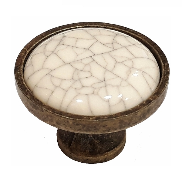 Πόμολα Επίπλων Πορσελάνης Μπεζ Κρακελέ Βάση Μπρονζέ 33mm ΑΑΥ-Μ8256