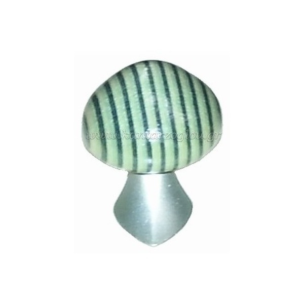 Πόμολο Ξύλινο Μανιτάρι Πράσινο Βάση Νίκελ Ματ 30mm