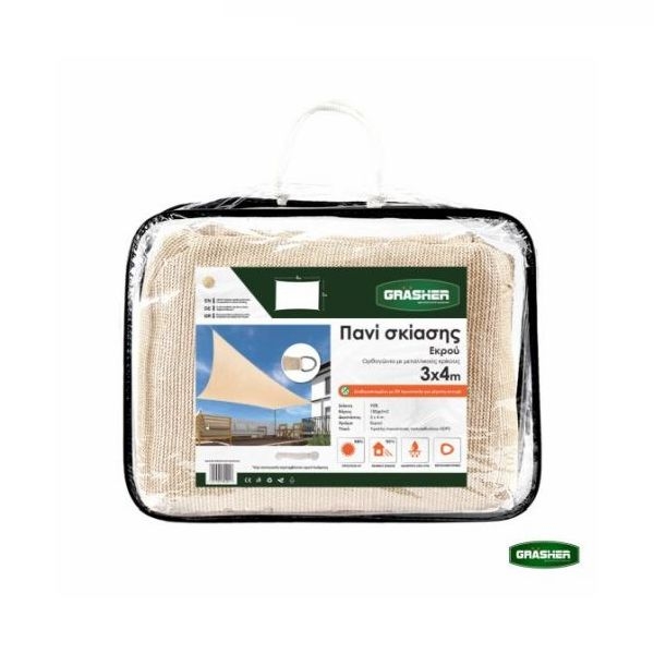Πανί Σκίασης Ορθογώνιο Εκρού180gr/m² 3x4m με Κρίκους GRASHER 103617