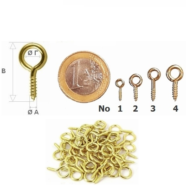 500pcs Screw Eye Hook 3x27,5x6 Gold