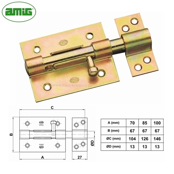 Amig 454.100 Bichromated Barrel Bolt w/ Padlock Holes