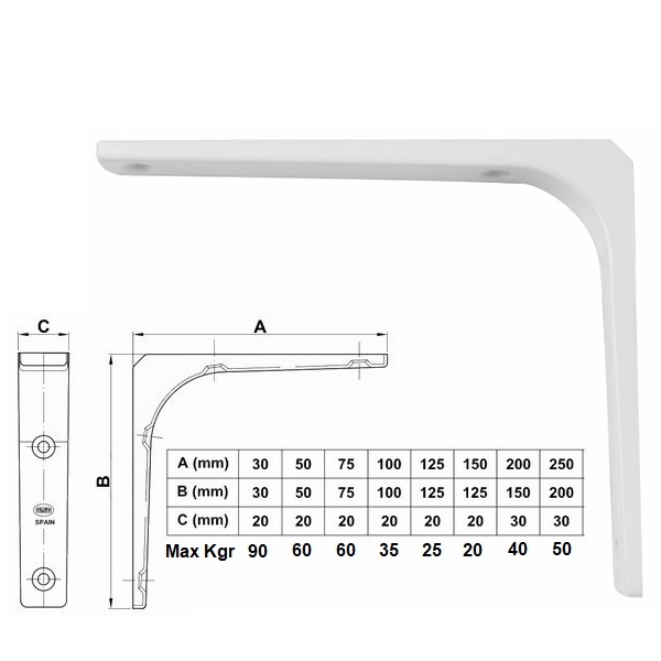 Home        Amig Mod.2 125x125mm White Epoxy Reinforced Corner Brace