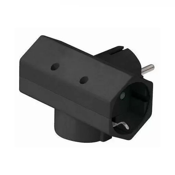 3 Way Black Schuko Wall Socket Adapter