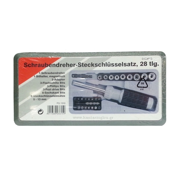 Σετ 28τεμ Κατσαβίδι με Αντάπτορα-Μύτες & Καρυδάκια Γερμανίας