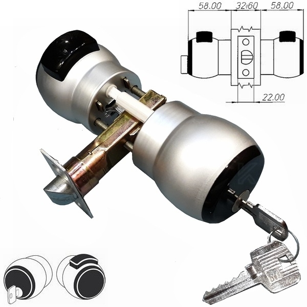 For entrances and offices Outside knob without push-button, with security plate (series NOVA only). Unlocked only from outside by key. Inside push-button for free passage.