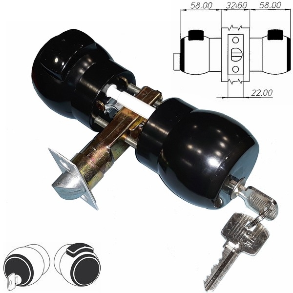 For entrances and offices Outside knob without push-button, with security plate (series NOVA only). Unlocked only from outside by key. Inside push-button for free passage.