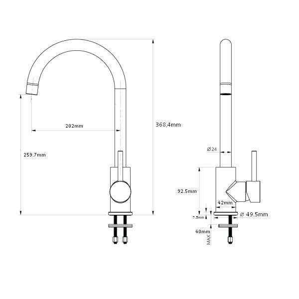 Luna Black Mat Kitchen Sink Basin Lever Tap