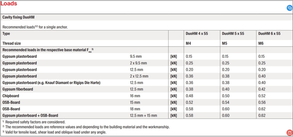Το βύσμα DuoHM είναι κατάλληλο για όλα τα κοινά πάχη λεπτότοιχων δομικών υλικών από 9,5 έως 30 χιλιοστά με ένα μόνο μήκος. Χάρη στον μοναδικό συνδυασμό νάιλον και μετάλλου, το DuoHM αντέχει σε υψηλά φορτία με μέγιστη ευελιξία στα λεπτότοιχα δομικά υλικά. Το μεταλλικό χιτώνιο διπλώνει και πιέζει στο πίσω μέρος της πλάκας, ενώ το πλαστικό μέρος σχηματίζει κόμπο. Το DuoHM τοποθετείται γρήγορα και εύκολα με κατσαβίδι μπαταρίας χωρίς πρόσθετα εργαλεία, μειώνοντας τον χρόνο τοποθέτησης έως και 50% σε σύγκριση με τα συμβατικά μεταλλικά στηρίγματα γυψοσανίδας. Χάρη στο μετρικό εσωτερικό σπείρωμα του βύσματος, το στοιχείο που στερεώνεται μπορεί να τοποθετηθεί και να αφαιρεθεί πολλές φορές. Εκτός από τη βίδα που παρέχεται, το DuoHM μπορεί επίσης να χρησιμοποιηθεί με άλλες μετρικές βίδες. Τα νάιλον πτερύγια αντιπεριστροφής προστατεύουν την επιφάνεια του δομικού υλικού από φθορές. Λόγω του στενού του χείλους, το βύσμα δεν είναι πλέον ορατό πίσω από το στοιχείο που στερεώνεται.