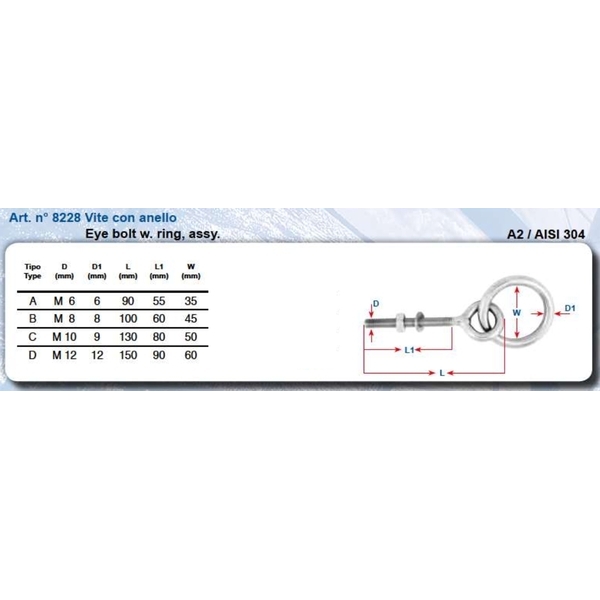 Βιδοθηλιά με Κινητό Κρίκο Ανοξείδωτη. Περιλαμβάνεται ανοξείδωτη ροδέλα και ανοξείδωτο παξιμάδι.
