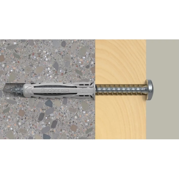 Χάρη στην εκτόνωσή του προς 4 κατευθύνσεις, το νάιλον βύσμα fischer SX Plus είναι ειδικό για συμπαγή και διάτρητα δομικά υλικά όπως σκυρόδεμα και τούβλο. Με ειδικά πτερύγια για συγκράτηση της βίδας, ακόμα και σε τοποθέτηση σε οροφές, παρέχοντας έτσι ευέλικτη και εύκολη διαδικασία τοποθέτησης. Με εύκαμπτη ροδέλα που αποτρέπει το βύθισμα του βύσματος στην τρύπα για ασφαλή τοποθέτηση. Το υψηλής ποιότητας νάιλον υλικό εγγυάται μόνιμα ασφαλές κράτημα σε ένα ευρύ φάσμα συμπαγών και διάτρητων δομικών υλικών.