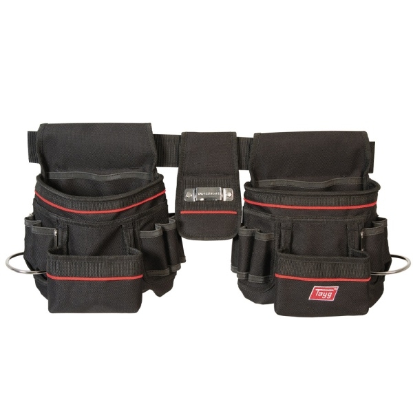 Επαγγελματική ζώνη εργαλείων δύο θυλάκων, κατασκευασμένη από πολυεστέρα 900D για μέγιστη αντοχή. Παρέχει άνεση, εργονομία και οργανωμένη πρόσβαση στα εργαλεία, ιδανική για τεχνίτες, ηλεκτρολόγους, υδραυλικούς και επαγγελματίες συνεργείων.