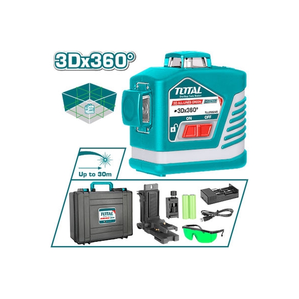 TOTAL Αλφάδι LASER 3D Αυτο-Οριζοντιούμενο με Πράσινες Ακτίνες (TLL255245)