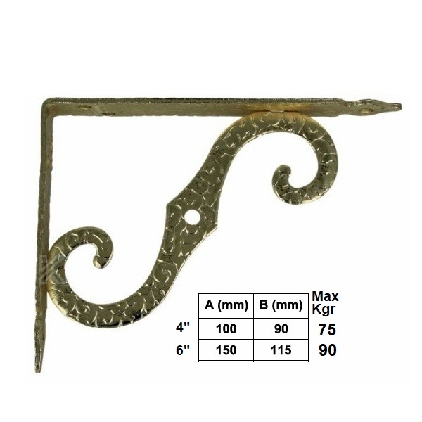 Γωνιά Ραφιού Αντικέ Σφυρήλατη Επορειχάλκινη Χρυσή Amig Mod.2