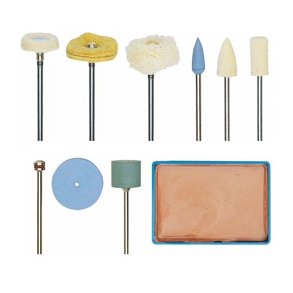 - Σετ στίλβωσης ιδανικό για τη στίλβωση μετάλλων, γυαλιού, πλαστικού, υψηλής ποιότητας πορσελάνης, και πολύτιμων μετάλλων.