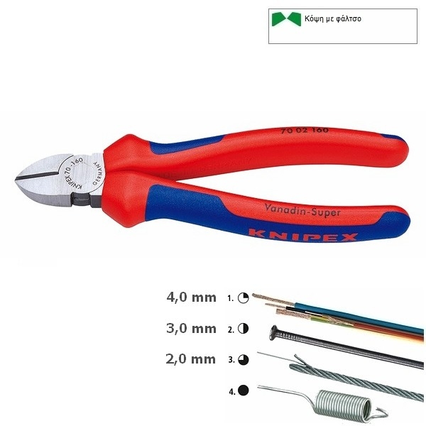 Καθαρή κοπή σε περίπτωση λεπτών χάλκινων καλωδίων, ακόμα και στις μύτες των κόψεων
