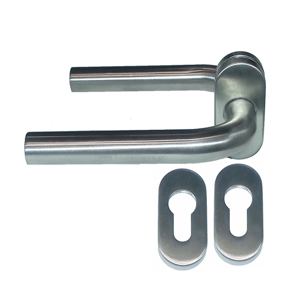 Πόμολα Εξώπορτας Στενή Πλάκα Ροζέτα Οβάλ Φιξ (Ζευγάρι) Ανοξείδωτο 3001-Α