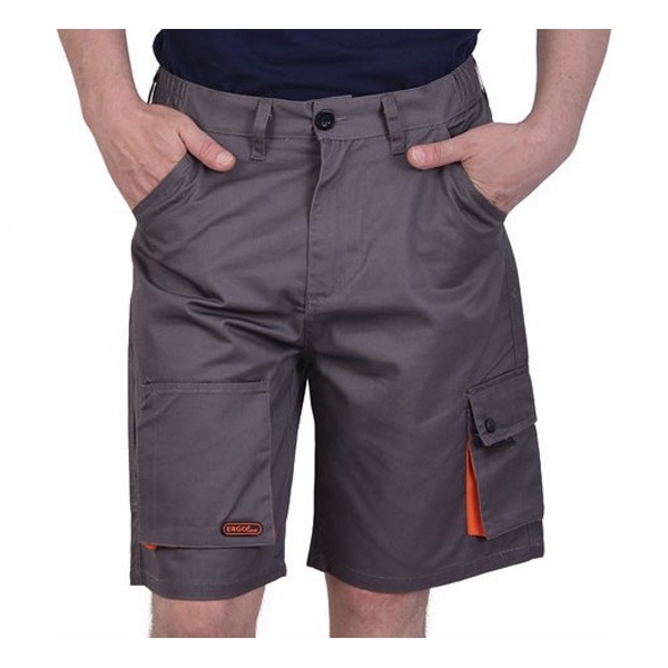 Βερμούδα εργασίας ERGOLINE γκρι με πoρτoκαλί λεπτoμέρειες.Ύφασμα σύμμικτo 65% poIyester – 35% βαμβάκι.Πλαϊvές τσέπες