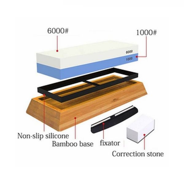 - A non-slip base (bamboo): This provides a stable and secure platform for sharpening, preventing the stone from slipping during use.