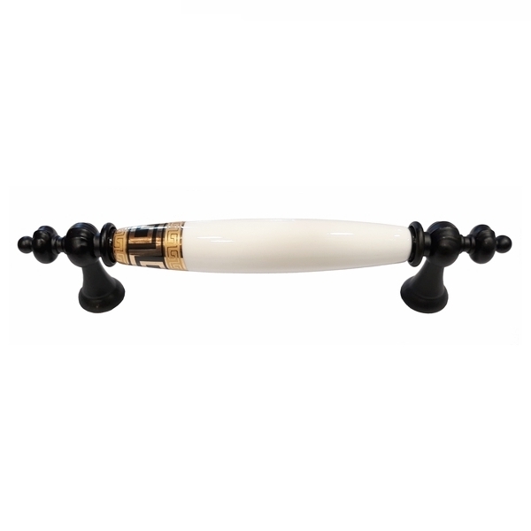 Λαβή Επίπλου Πορσελάνης Λευκό Διακόσμηση Μαίανδρος Βάση Μαύρο Ματ 128mm TMC 1980-85-128-448