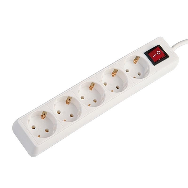 Socket 5 Schuko Holes Cable 3x1,5mm Extension 1,5m with Switch